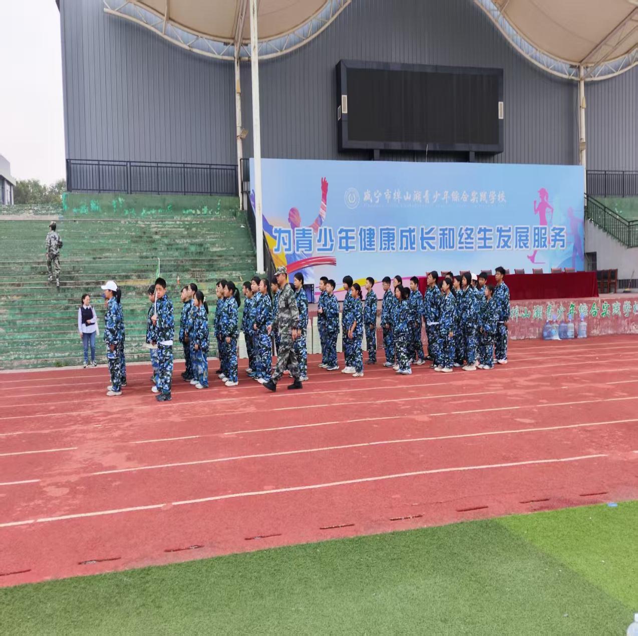 雨天室内活动:面对降雨天气,各班级迅速调整方案,转至室内开展队列操练。学生以快速适应、专注投入的状态,展现出良好的应变能力,彰显了研学实践中“风雨无阻、砥砺前行”的育人成效。