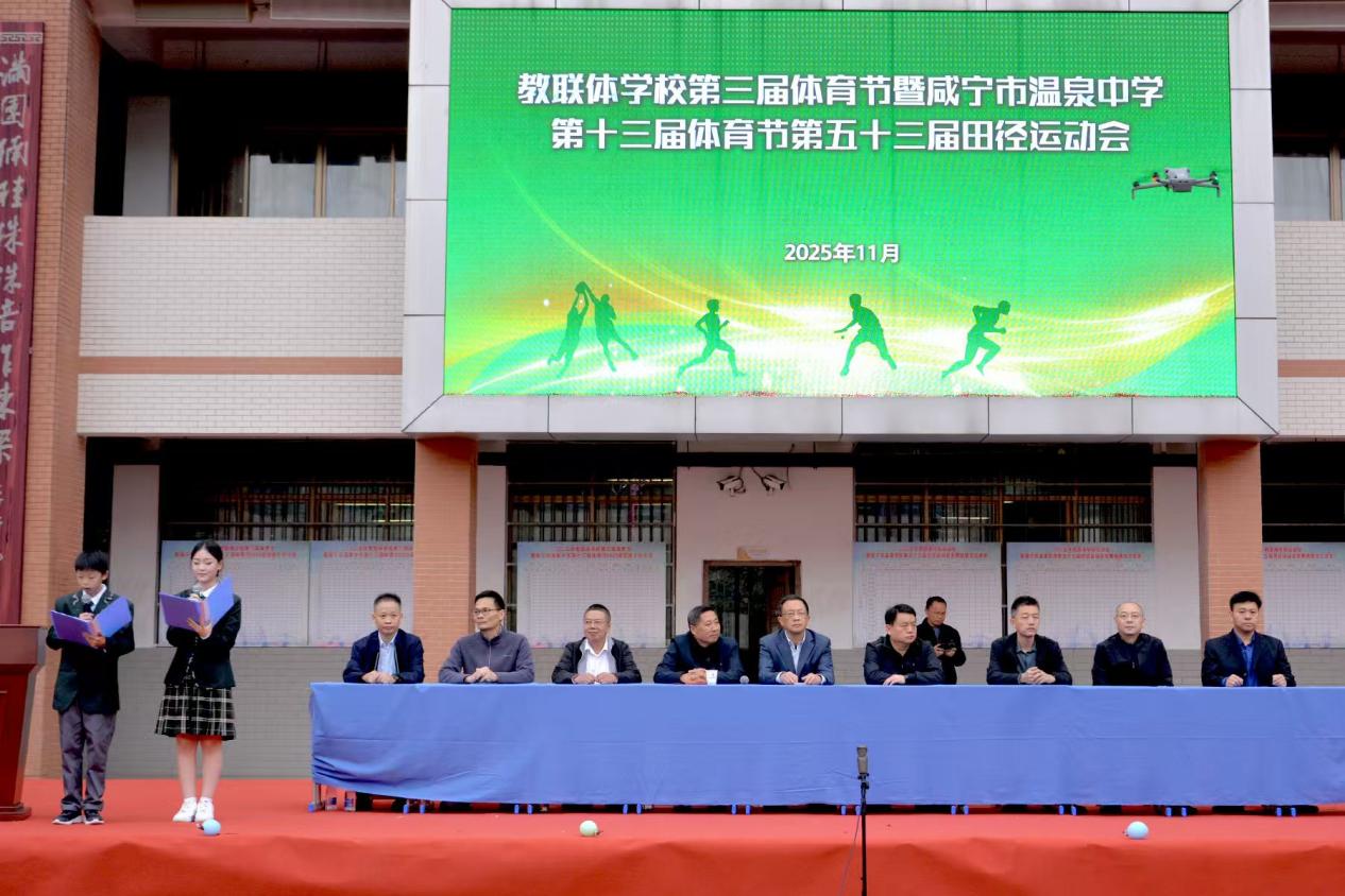 旌旗飞扬,惠风和畅。11月3日,咸宁市温泉中学操场上洋溢着青春的活力与激情。教联体学校第三届体育节暨咸宁市温泉中学第十三届体育节、第五十三届田径运动会在这里隆重拉开帷幕。本次盛会由温泉中学与咸安区马桥初级中学携手承办,两校学子齐聚一堂,共赴一场体育盛宴。