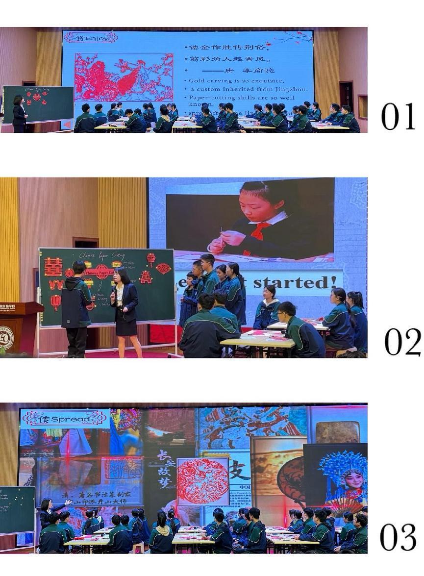 赤壁慧晟实验学校游佳老师的Chinese paper cutting(中国剪纸)双语公益课让我印象颇深。她让学生“赏”关于剪纸的古诗词为课堂导入,接着通过“读”、“说”两个环节让学生了解中国剪纸的历史、风格、背后的含义以及制作步骤。最后,以动手“做”剪纸达到课堂高潮,以用英语书写、表达祝福为课堂总结,将学科育人无痕渗透到教学过程中。学生在学习英语的同时,还能体验手工制作的乐趣,发挥创造力,感受中国传统文化的独特魅力,提高民族自信心和自豪感,激发了学生“用英语讲述中国故事”的意识。