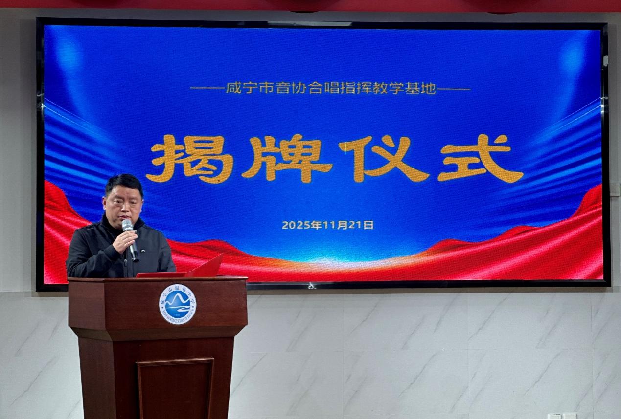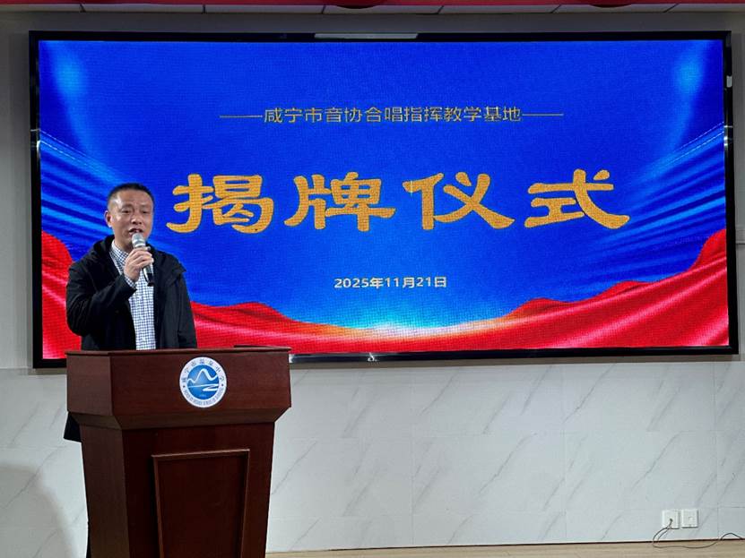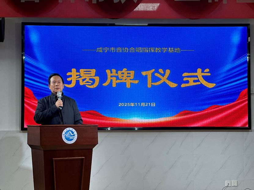 2025年11月21日,咸宁市首个“市音乐家协会合唱指挥教学基地”揭牌仪式于我校隆重举行。该基地的落户,标志着我市合唱艺术教育事业开启了体系化、专业化发展的新篇章,也为咸宁“合唱之城”建设注入了新的青春动能。