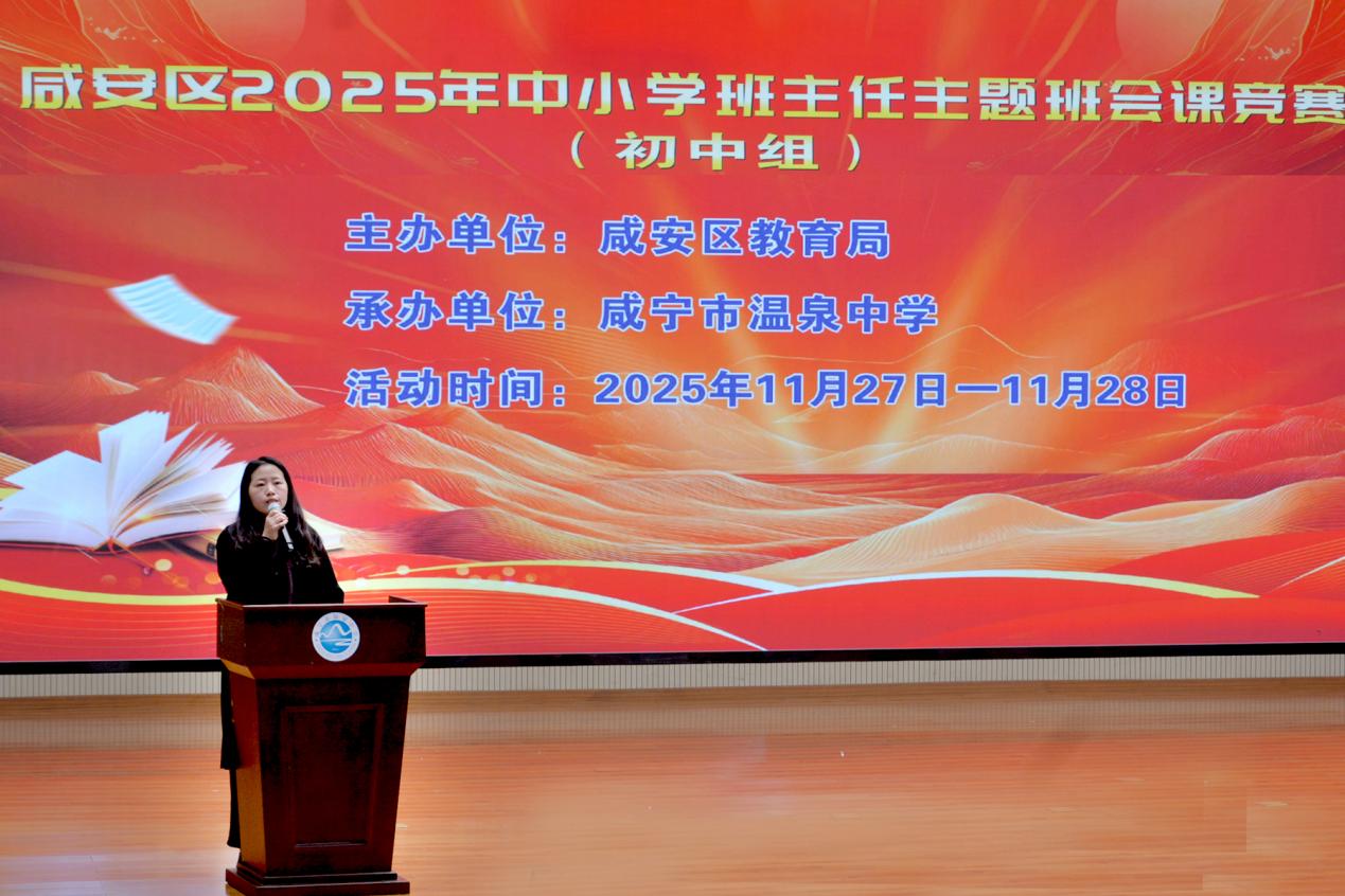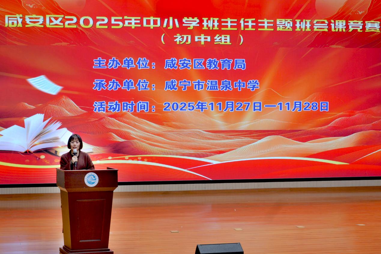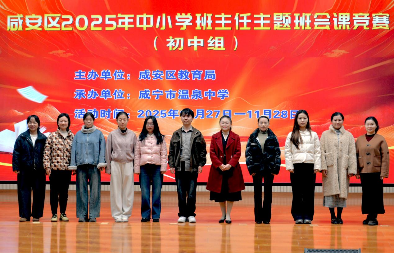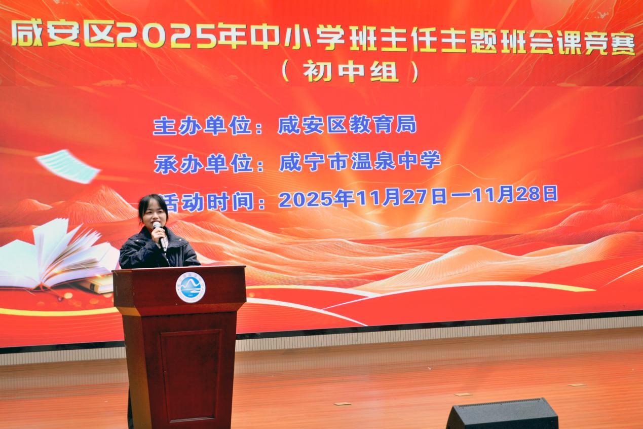 为深化立德树人根本任务,全面提升班主任建班育人能力,11月27日——11月28日,由咸安区教育局主办、温泉中学承办的咸安区第二届初中班主任班会课竞赛圆满落幕。来自全区各初中的10名优秀班主任同台竞技,围绕七大核心素养主题,呈现了一场精彩纷呈的教育智慧盛宴。