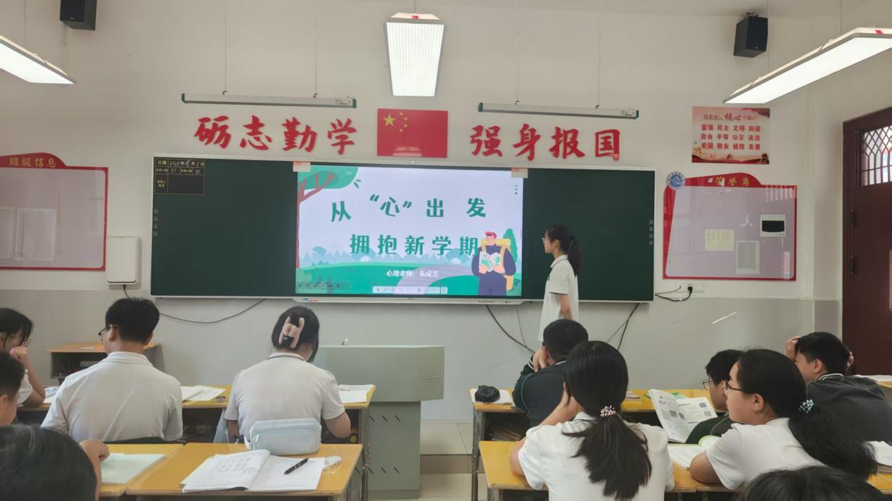 近日,随着新学期的正式开始,为帮助同学们更好地适应从假期到校园生活的转变,我校于9月5日上午举办了以“从‘心’出发,拥抱新学期”为主题的心理健康班会课。本次班会由心理老师朱成芳主讲,通过广播形式面向全校师生开展,为大家带来一场温暖而实用的“心理适应能量包”。